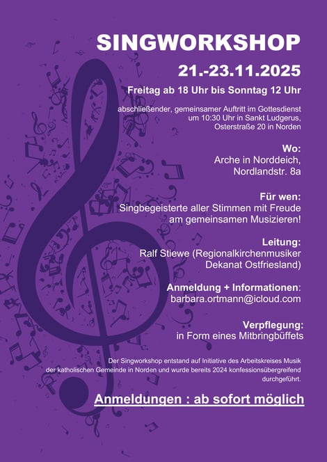 Herzliche Einladung zur Neuauflage des Singworkshop! Begeisterte Sängerinnen und Sänger sind herzlich eingeladen unter der Leitung vom Dekanatskirchenmusiker Ralf Stiewe gemeinsam zu singen, zu lachen und eine gute Zeit zu verbringen.